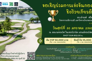 ด้วย สมาคมปริญญาโทสำหรับผู้บริหาร มหาวิทยาลัยเกษตรศาสตร์ ร่วมกับคณะนิสิตโครงการปริญญาโทสำหรับผู้บริหาร (Ex-MBA KU) รุ่นที่ 35 กำหนดจัดการแข่งขันกอล์ฟ ชิงถ้วยรางวัลเกียรติยศจาก...