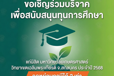 ขอเชิญร่วมบริจาคสมทบทุนการศึกษา ประจำปีการศึกษา 2568 แก่นิสิต มหาวิทยาลัยเกษตรศาสตร์ วิทยาเขตเฉลิมพระเกียรติ จ.สกลนคร